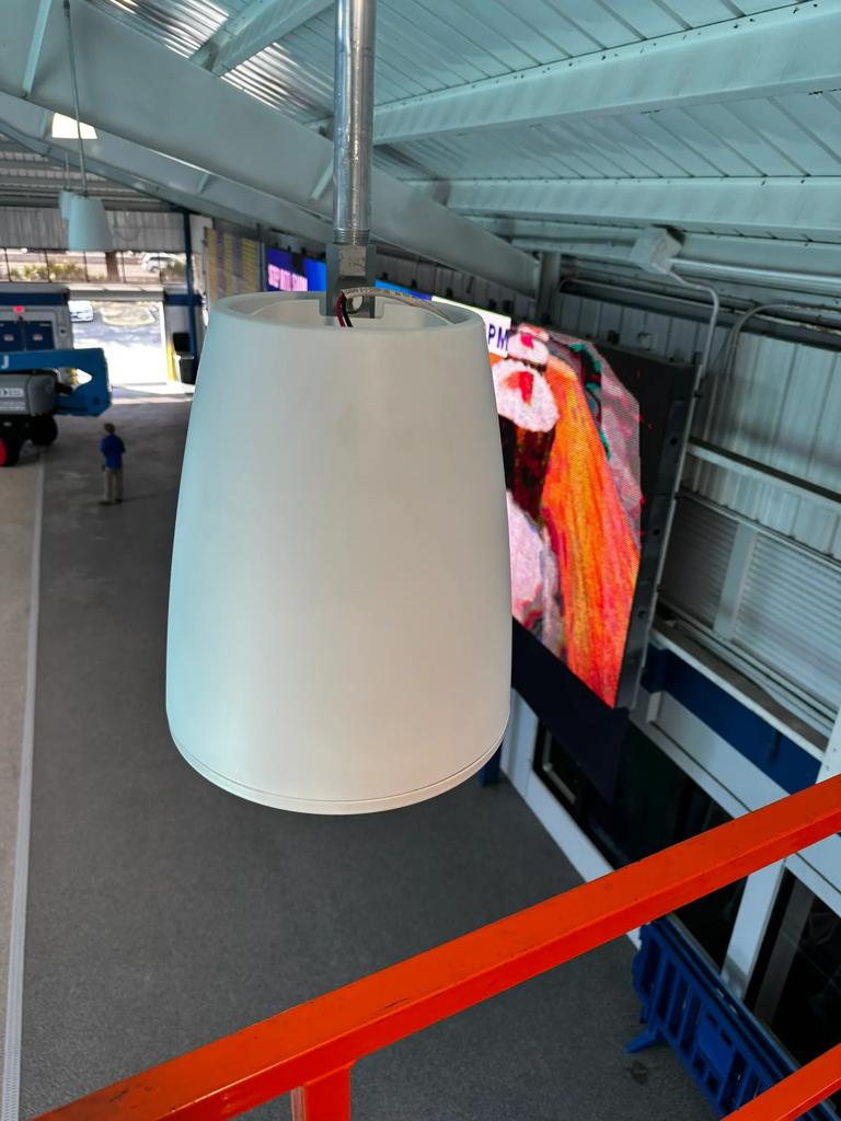 - enceintes extérieures DM8SE en saillie installées sur le parking pour les zones supplémentaires des vendeurs et des événements.