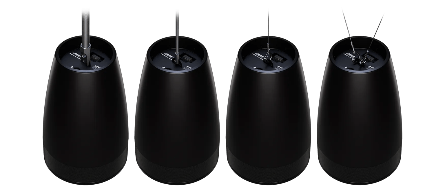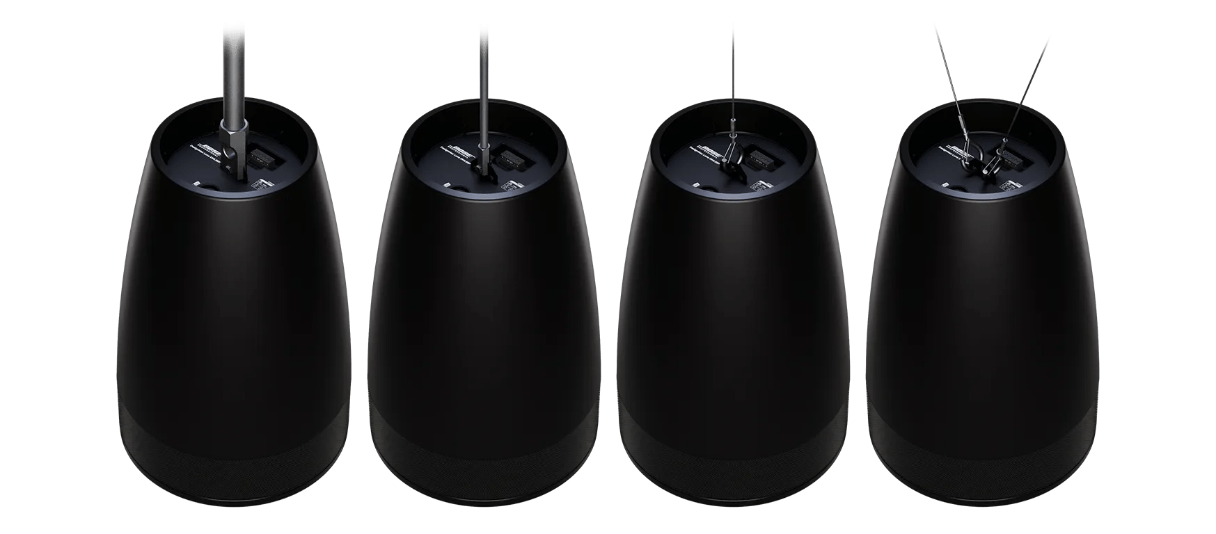 L’enceinte Luna est compatible avec la suspension à un ou deux points, ce qui permet aux installateurs de s’adapter aux contraintes liées au plafond tout en maintenant un équilibre parfait. Vous disposez d’un point de fixation net au plafond ou vous devez passer d’une solive à l’autre ? Les options de suspension flexibles de l’enceinte Luna assurent une installation simple et un alignement parfait.