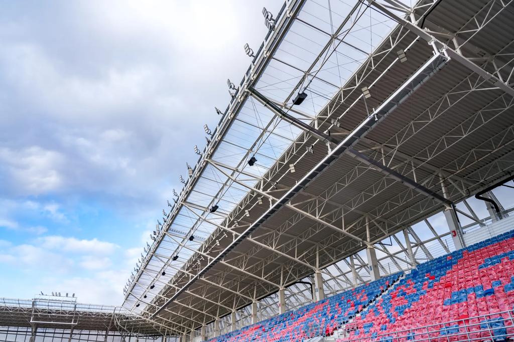 这座由华沙90 Architekci建筑事务所设计的新建筑兼具功能性和美观性。其半透明的特氟龙涂层玻璃纤维外立面包裹着钢结构框架,并由456盏RGB灯照明,灯光会根据俱乐部活动、国家节日或音乐会变换颜色。内部设有带顶棚的看台、现代化的食品亭、方便残障人士使用的无障碍设施,以及贴心的配套设施,例如专属家庭区、带暖气的VIP区域和配备自动化操作系统的媒体中心。